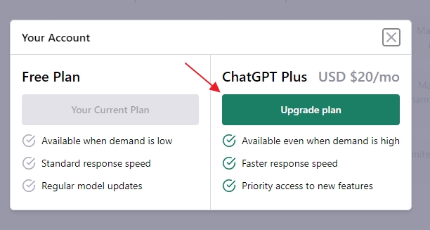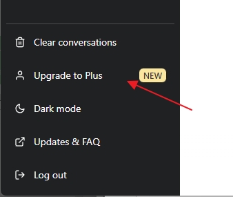 Sau khi đăng nhập thành công, chọn Upgrade to Plus