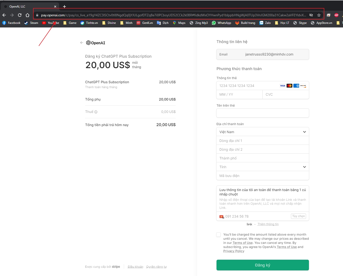 Hướng dẫn lấy link thanh toán ChatGPT Plus